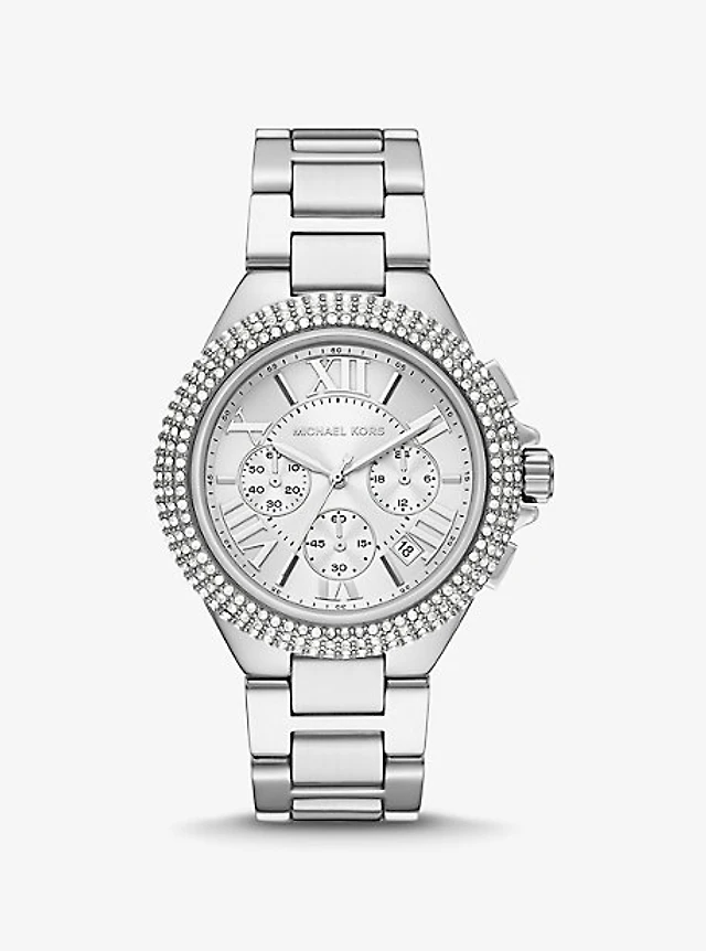Oversized Slim Everest Pavé Silver-Tone and Embossed Silicone Watch