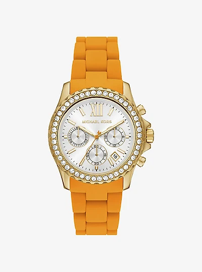 Everest Pavé Gold-Tone and Silicone Watch