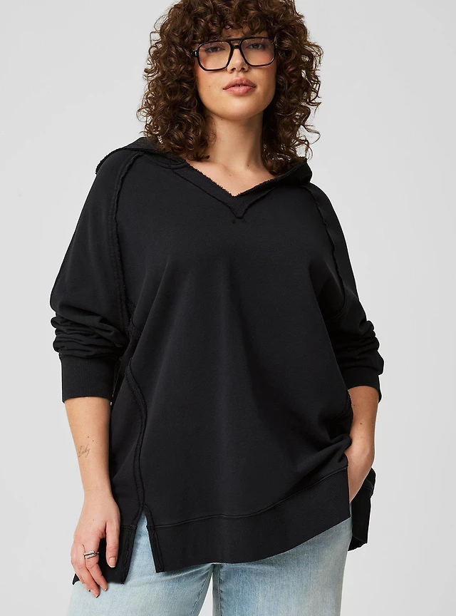 Ardene Boucle Oversized V-Neck Sweater in Burgundy | Size | Polyester/Elastane