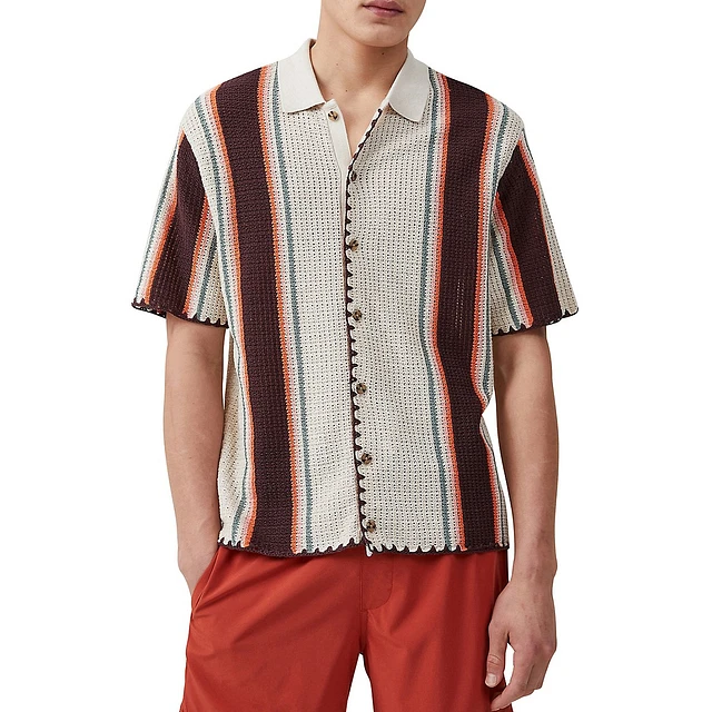 Pablo Border-Stitched Striped Knit Short-Sleeve Shirt