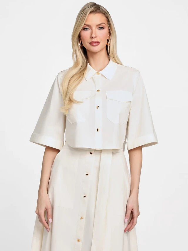 Monet Skateboards Stripe Blue Short Sleeve Button Up Crop Shirt