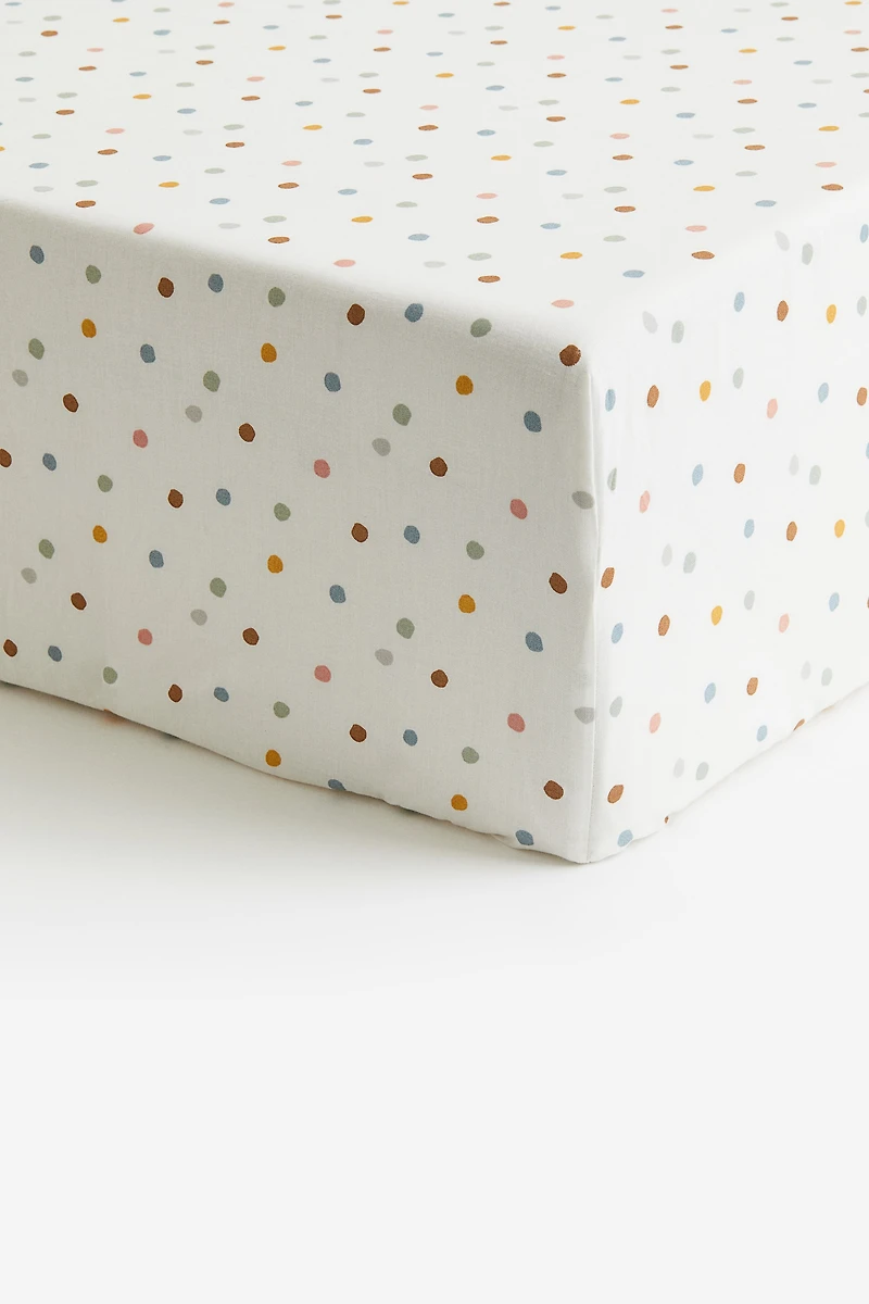 Fitted sheet in woven cotton fabric with a pattern. Easily matched with other colors and patterns for a personalized look. Fits mattresses up to 9 in. thick.
