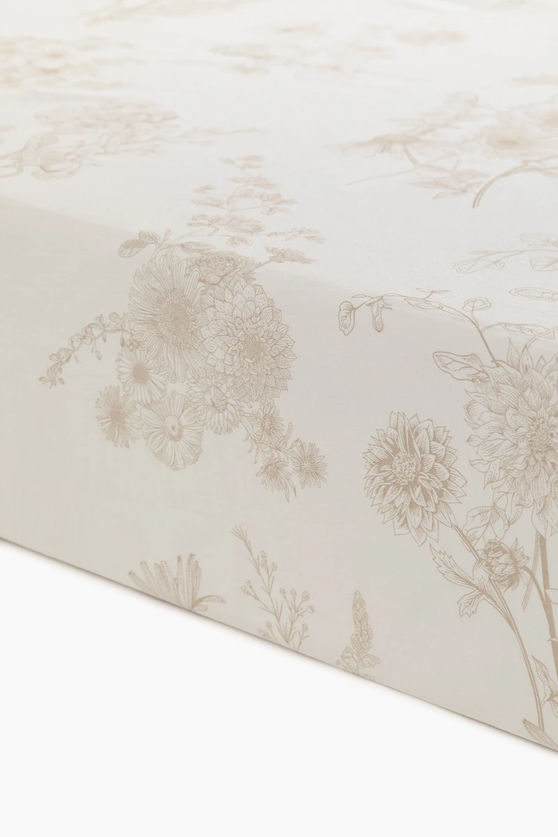 Fitted sheet in cotton satin with a pattern. Thread count 210.
