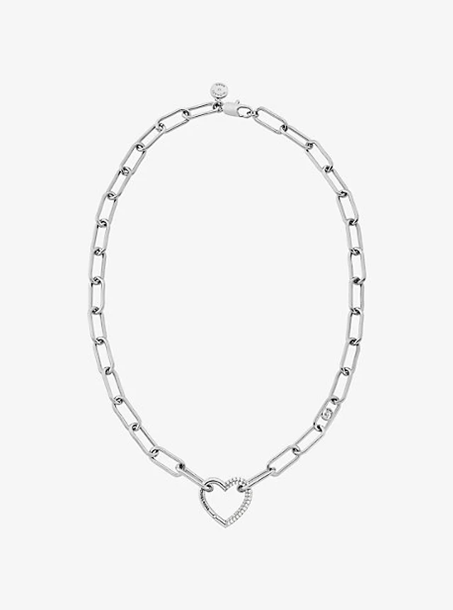 Pavé Heart Curb-Link Necklace