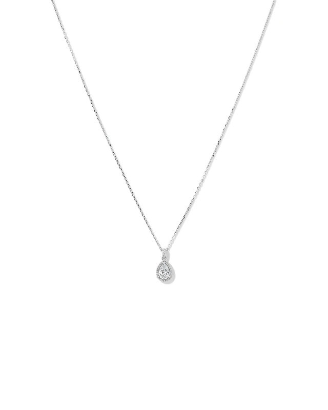 Pear Cubic Zirconia Halo Pendant Necklace in Sterling Silver