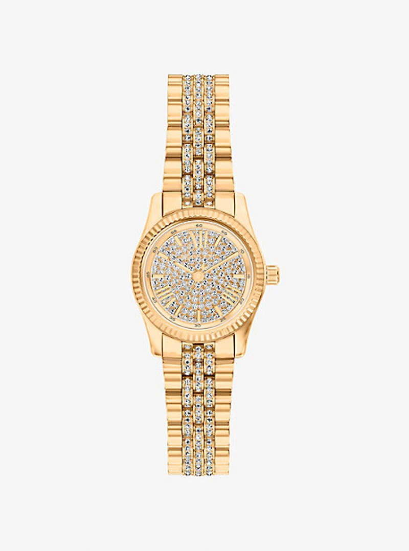 Dripping in pavé, our iconic lexington watch is reimagined with next-level shine. Cast in gold-tone hardware, this stainless-steel watch boasts a pavé-encrusted round face and bracelet strap. Slip it on to give both day and night ensembles a dose of glamour.