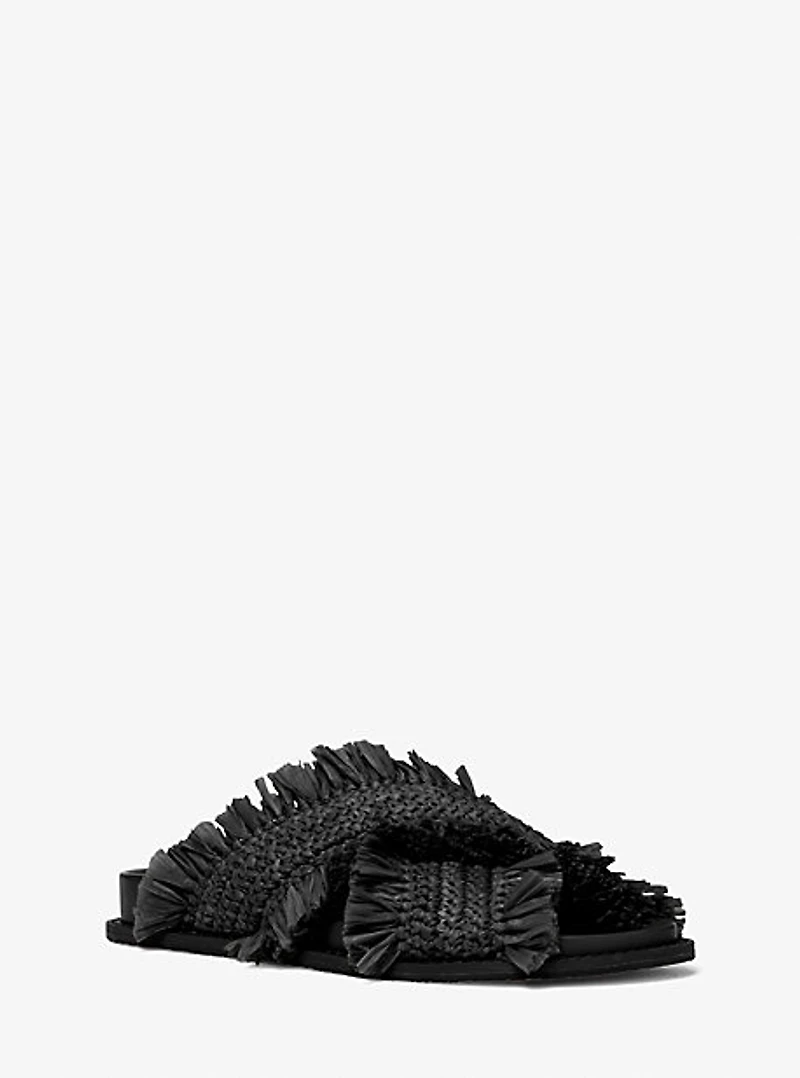 Amplify your warm-weather looks with the peyton sandal, an effortless slip-on style with major impact. The crossover straps are crafted in a raffia-inspired weave and trimmed with fringe for added texture.