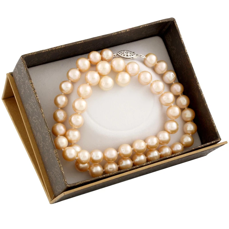 Boxed 8-8½mm natural pink freshwater pearl necklace, 18", sterling silver rhodium plated fisheye clasp and matching studs.