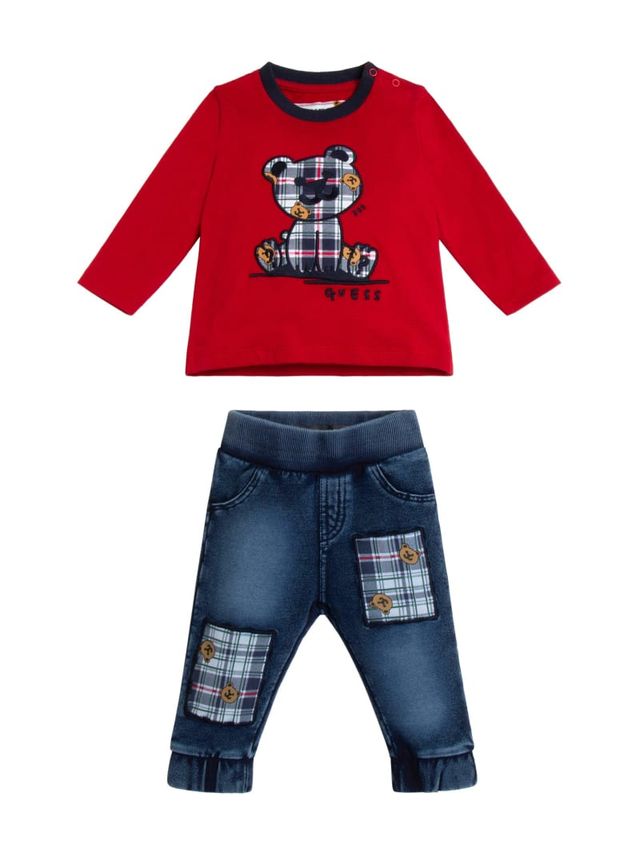 Plaid Teddy Bear Tee and Denim Pants Set (0-24M)