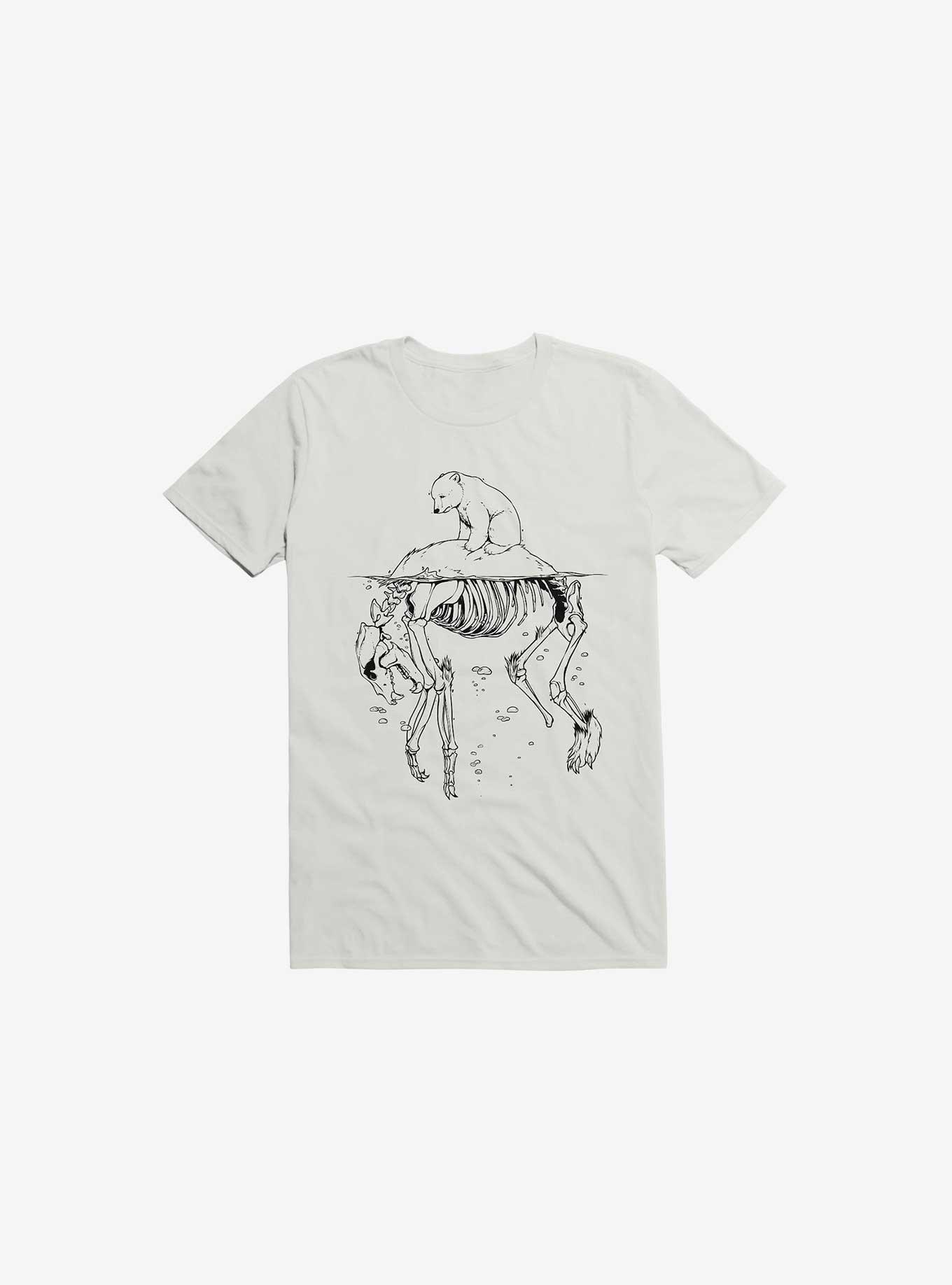 All the sadz. This lightweight white graphic tee features a baby polar bear floating on the skeletal remains of its mother. Officially licensed art from remfreak.