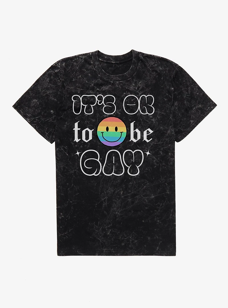 Pride It's Ok Smiley Rainbow Face Mineral Wash T-Shirt