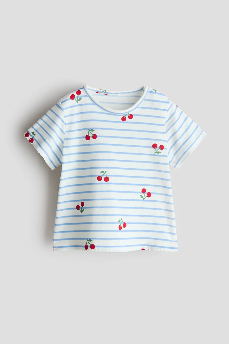 Top in soft cotton jersey with a printed design. Round neckline with snap fasteners at one side (sizes 2–4Y without snap fasteners), and short sleeves.