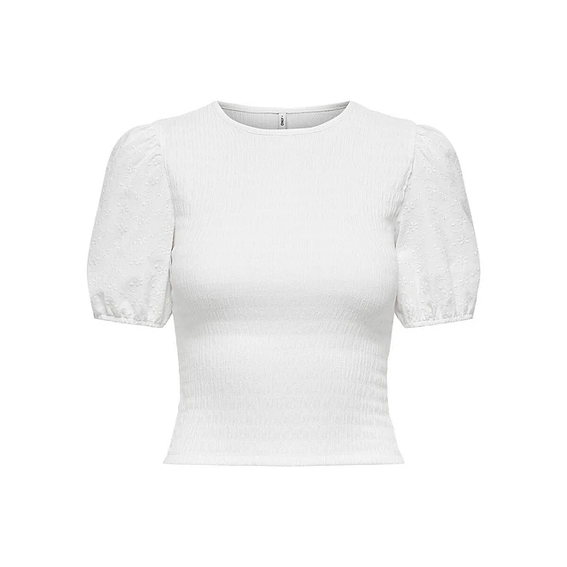 Georgette Eyelet Smocked Waist Puff Sleeve Top
