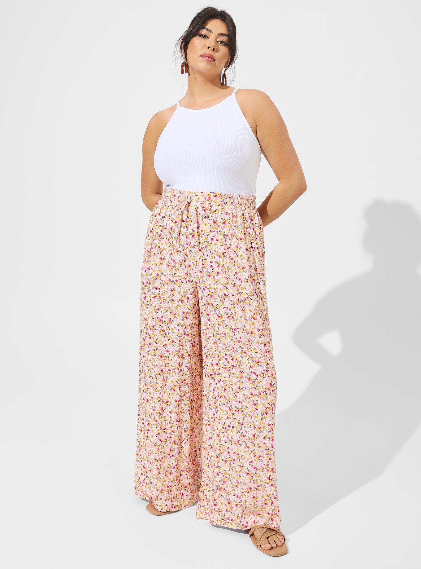 FIT High rise. Wide leg silhouette. 30'' inseam. MATERIALS + CARE Washable Gauze woven fabric: The lightweight, breathably soft fabric you love is, at last, wash, wear and go! Stretch level: None. 74% rayon, 26% polyester. Machine wash cold. Tumble dry low. Imported. DETAILS Pull-on elastic waistband. Drawstring detail.