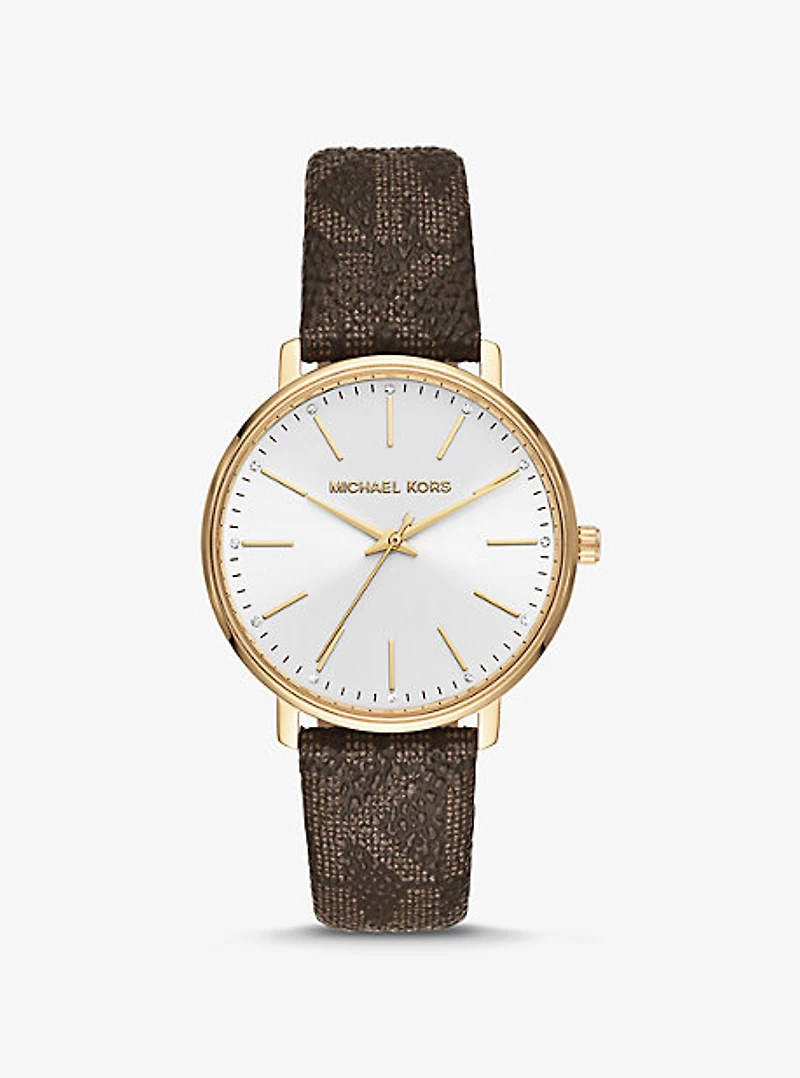 Our pyper watch is the definition of everyday elegance. Designed with a signature logo-print strap this gold-tone style features a minimalist watch face. Wear it solo or stack it with gleaming bangles for a glamorous effect.