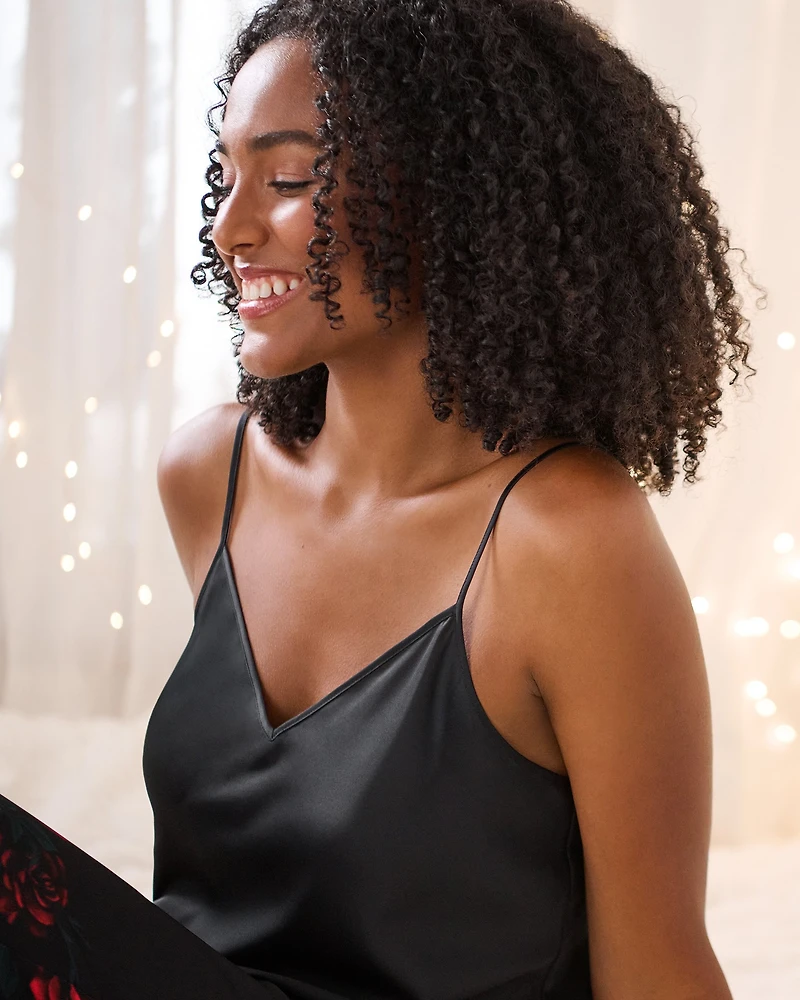 Red Rose Print Satin Cami