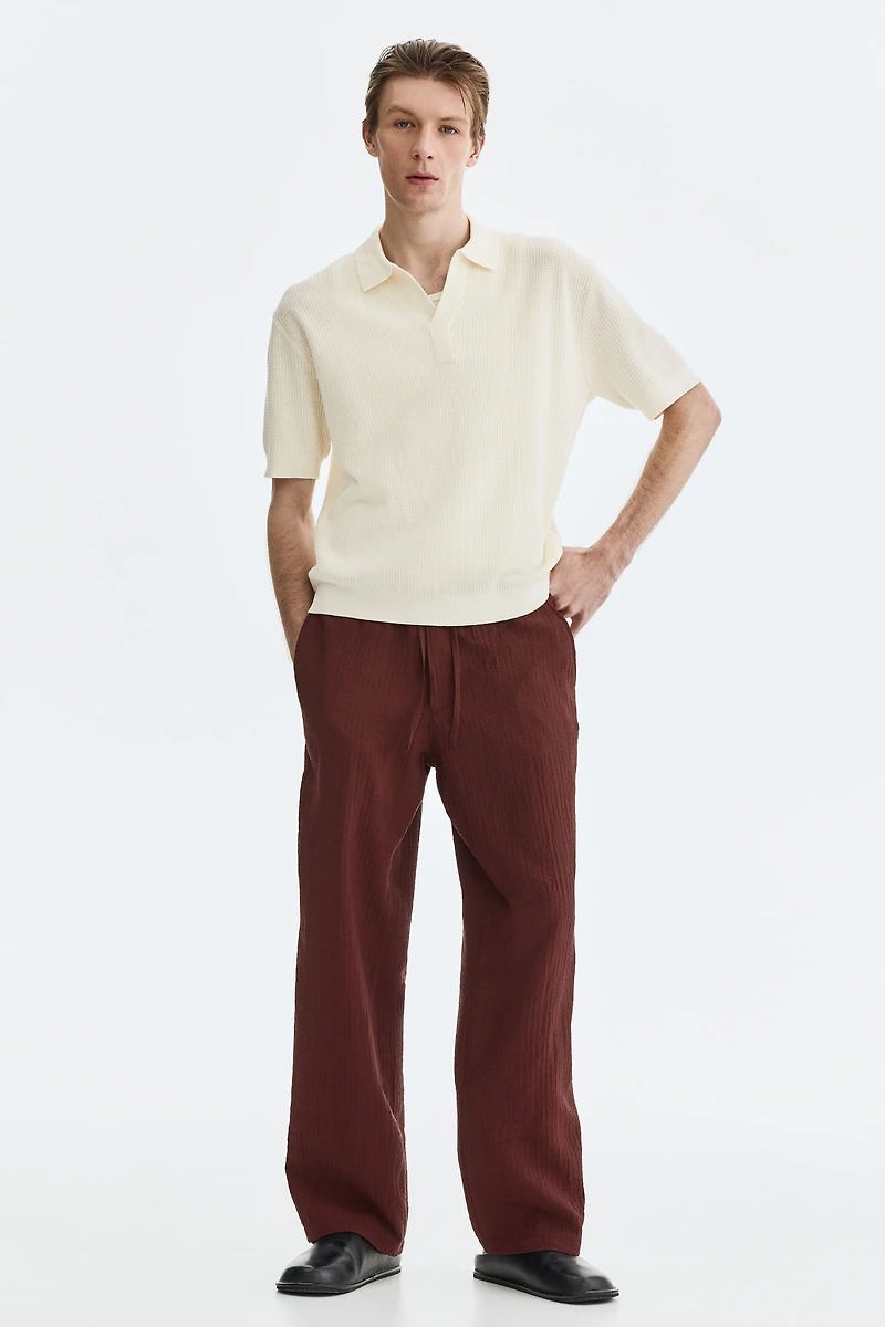 Regular-fit polo shirt in a fine cable knit with a comfortable, classic silhouette. Collar, small V-shaped opening at front, and short sleeves. Fine rib-knit trim at cuffs and hem.