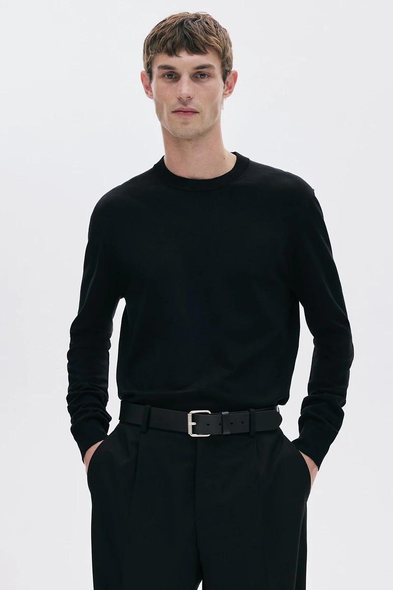 Regular-fit, fine-knit sweater with a comfortable, classic silhouette. Round neck, long sleeves, and ribbing at neck, cuffs, and hem.