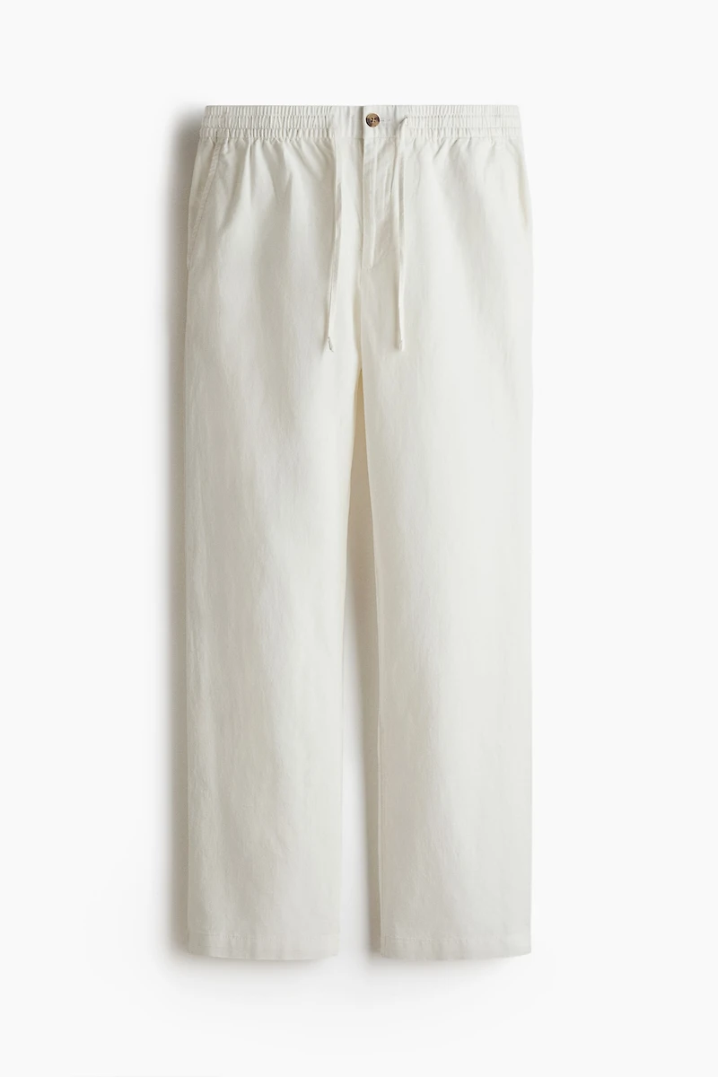 Regular-fit pants in an airy, woven cotton and linen blend with a comfortable, classic silhouette. Drawstring and covered elastic at waistband, zip fly with button, side pockets, and a welt back pocket. Cotton and linen blends combine the softness of cotton with the sturdiness of linen, creating a beautiful, textured fabric that is breathable and perfectly draped.