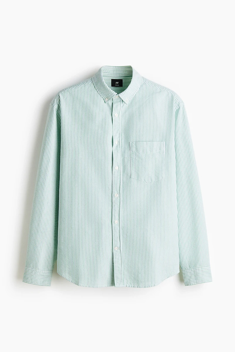 Regular-fit shirt in Oxford cotton with a comfortable, classic silhouette. Button-down collar, classic button placket, an open chest pocket, and a yoke at back. Long sleeves, sleeve placket with link button, and button at cuffs. Gently rounded hem.