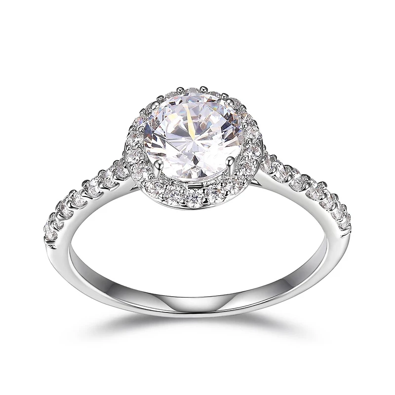 Elegant and radiant, the Reign Round Halo Ring showcases a stunning center stone surrounded by a sparkling halo. Its classic design and shimmering details make it a perfect symbol of sophistication and timeless beauty, ideal for any special occasion.