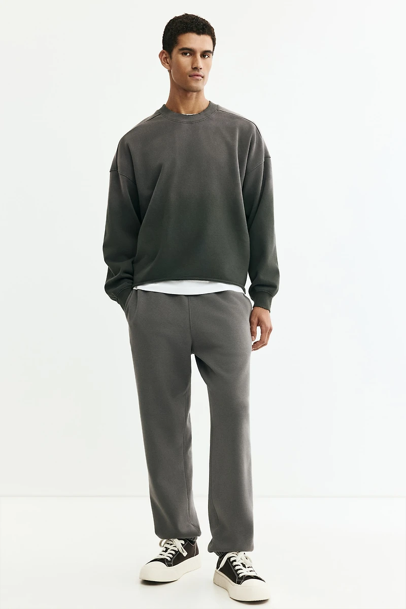 Relaxed-fit sweatpants in medium weight cotton-blend fabric with a casual, but not oversized silhouette. Drawstring and covered elastic at waistband, side-seam pockets, and ribbed hems. Soft, brushed inside.