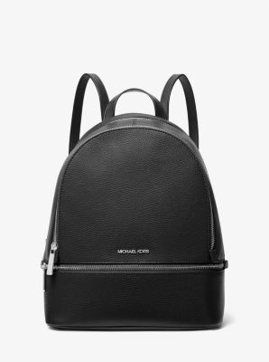 Backpack, pebbled leather, 100% leather, trim: 60% polyurethane/20% cotton/20% polyester, silver-tone hardware, 10. 5”w x 12. 75”h x 5”d, handle drop: 1. 5", adjustable strap: 9"-13. 25", exterior details: front zip pocket, interior details: back zip pocket, lining: 100% polyester, zip fastening, imported