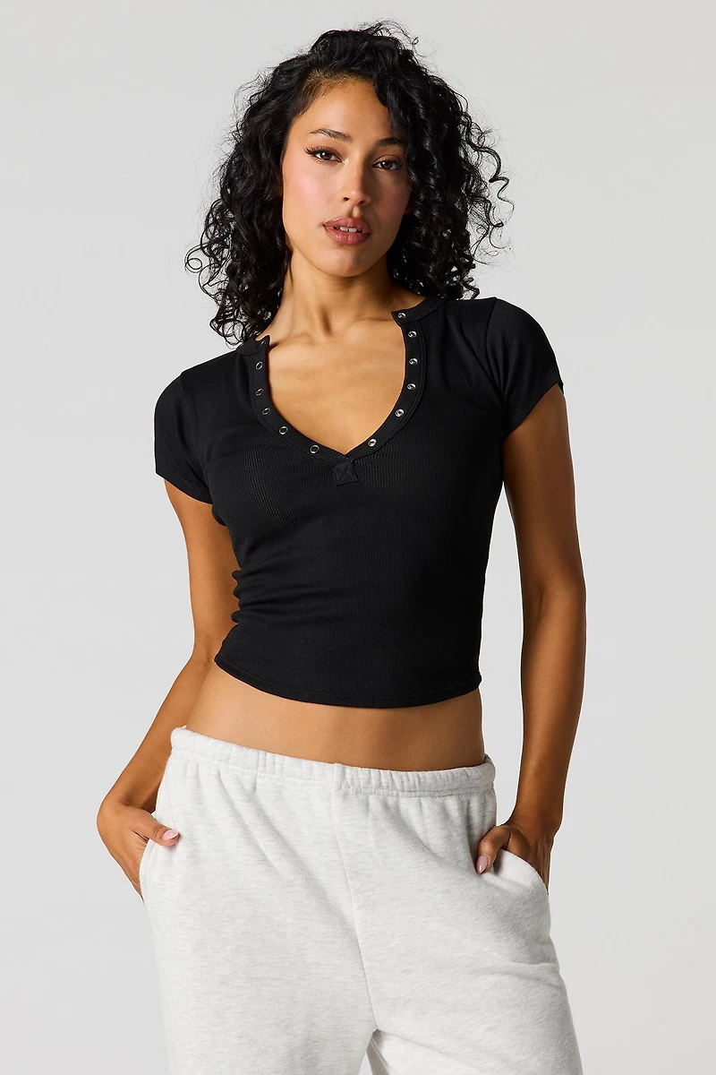 Ribbed Henley Baby Tee