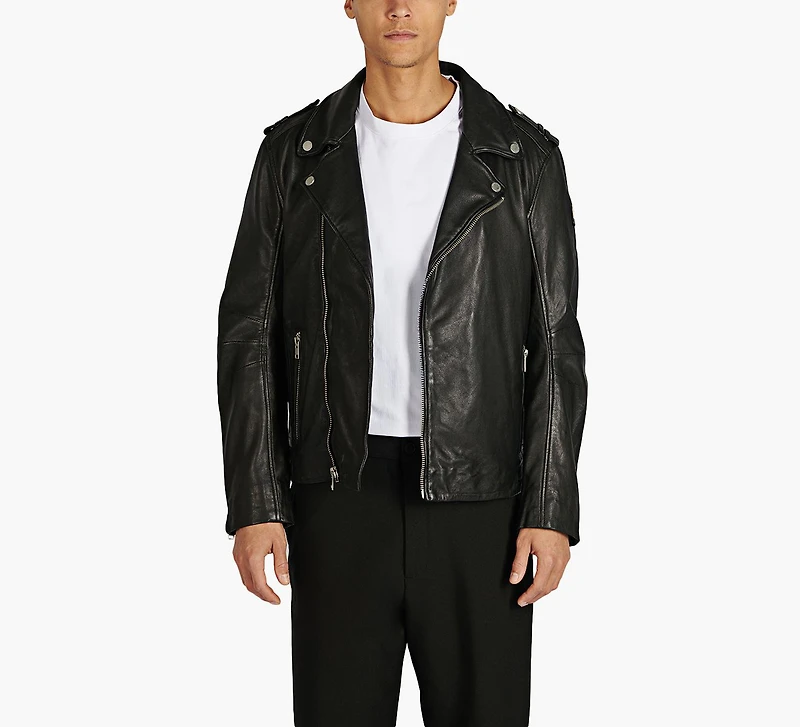 Expertly crafted with top quality leather, the Rotys RF Leather Jacket boasts a classic and sleek design. Perfect for any occasion, this moto jacket exudes effortless style and unparalleled comfort. Whether you're heading out for a night on the town or a casual day out, this jacket ensures you stay fashionable and comfortable. The jacket features a durable construction, zippered pockets for convenience, and adjustable cuffs for a personalized fit. Its timeless design makes it a versatile addition to any wardrobe, providing both style and functionality.