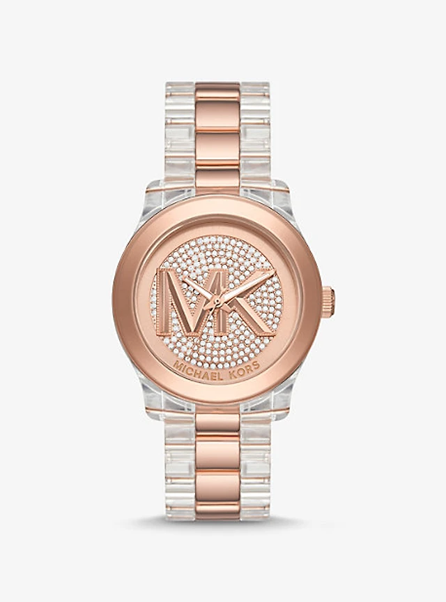 Runway Pavé Rose Gold-Tone and Acetate Watch