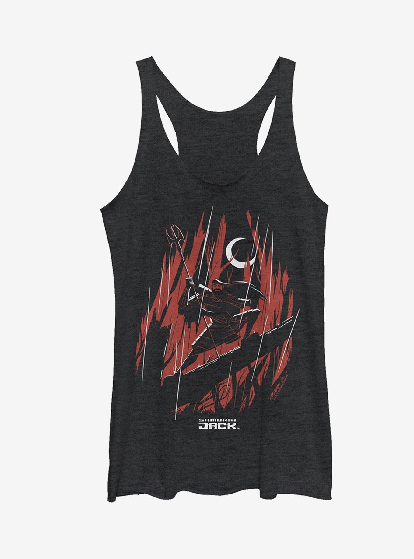 The future may be dystopian, but your fashion doesn't need to be with the Cartoon Network Samurai Jack Women's Racerback Tank Top. Jack is framed by red streaks and a solar eclipse on this cool relaxed-fit tank top. Designed with raw-edge hems.