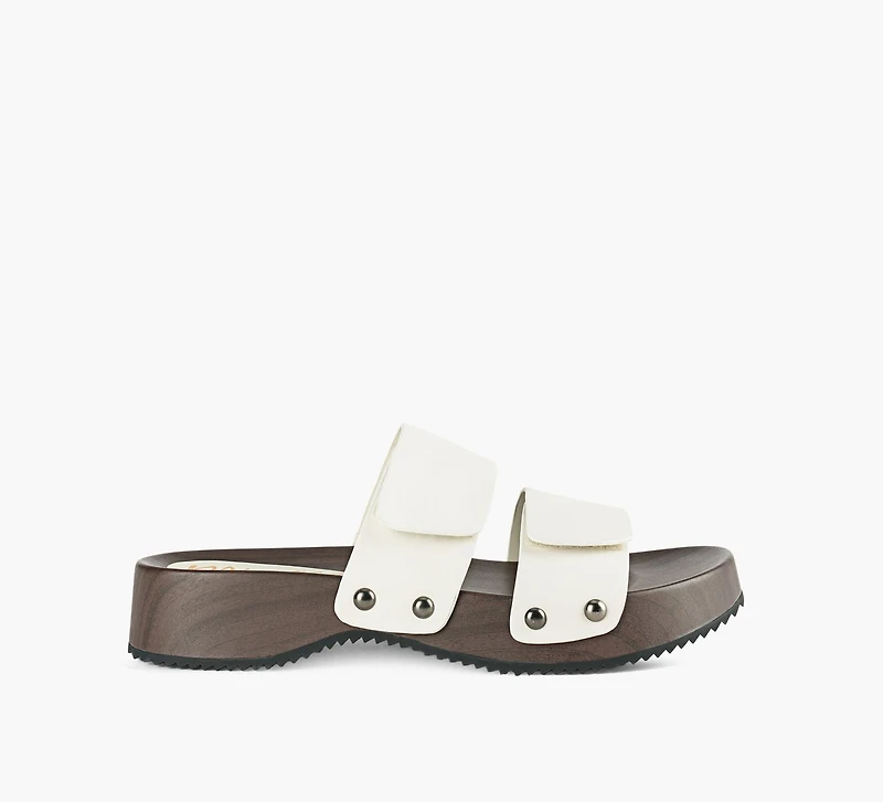 Even when it comes to dreaming up sartorial staples, Mimosa never fails to inject a touch of whimsy. Incorporating texture into a minimalist silhouette, the Sauvignon sandals are grounded by a chunky sole laden with a wood-inspired motif. Sleek (and not to mention adjustable) leather straps adorn the upper before being finished with gleaming rivets, certain to catch the eye as you stroll past.