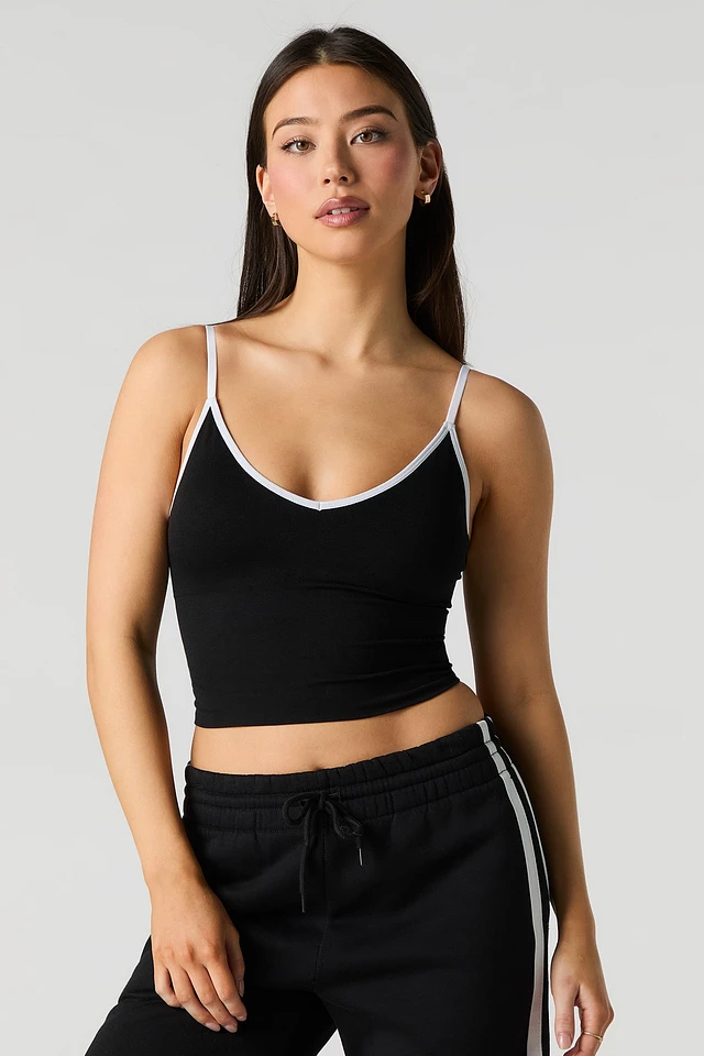 Seamless Ribbed V-Neck Cami with Built-In Cups