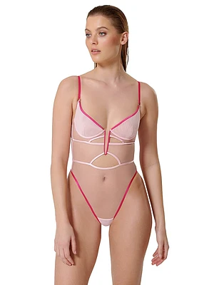Elegance and ease in a single garment: this bodysuit is finished with botanical embroidered lace and wide set straps with structured boning. A high-rise thong makes it stand out.