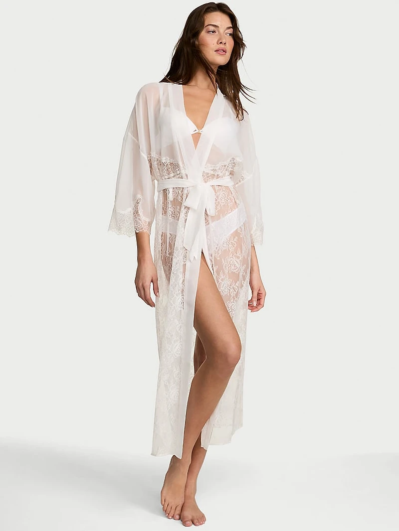 Sheer Rose Lace Long Robe