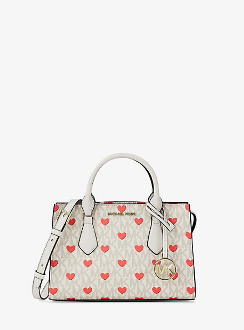 Satchel, logo-print canvas, 90% coated canvas/10% polyester, trim: 60% polyurethane/40% polyester, gold-tone hardware, 9. 25”w x 6. 25”h x 3. 5”d, handle drop: 3. 5”, adjustable strap: 19"-26", interior details: back zip pocket, lining: 100% polyester, zip fastening, dust bag not included, imported