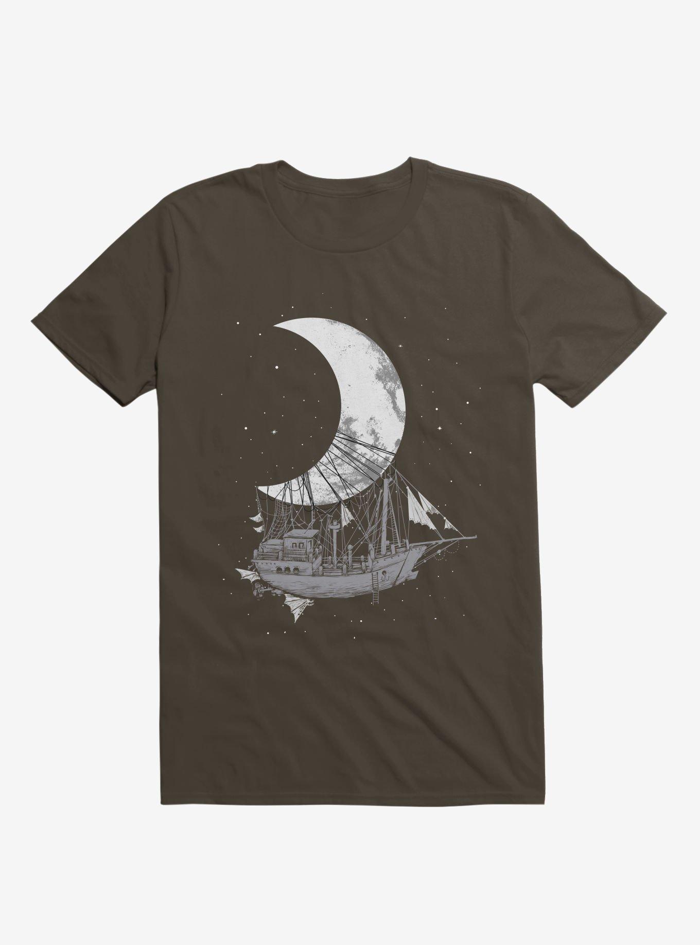 Here's a ship that's really making waves. It's in space - and it's got the Moon in tow! This lightweight brown tee imagines one truly unbelievable feat. Officially licensed art from digitalcarbine.