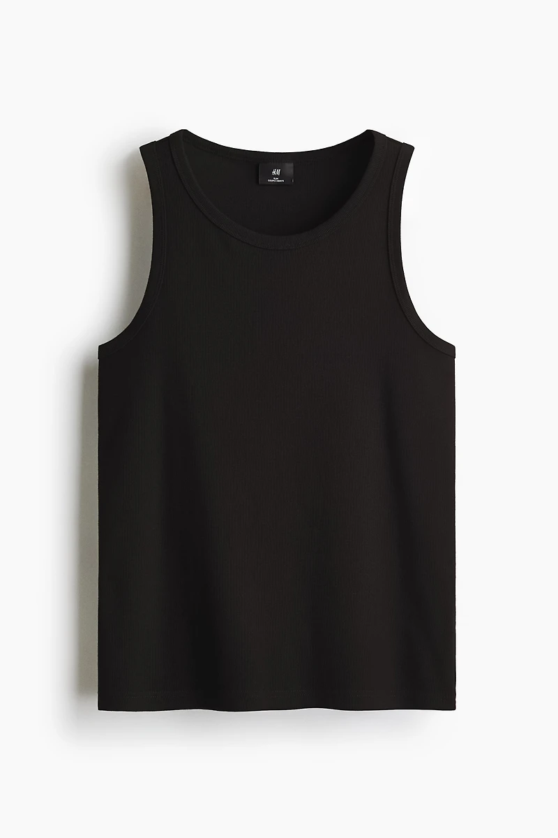 Ribbed tank top in lightweight cotton-blend jersey with a slim, fitted silhouette. Straight-cut hem.