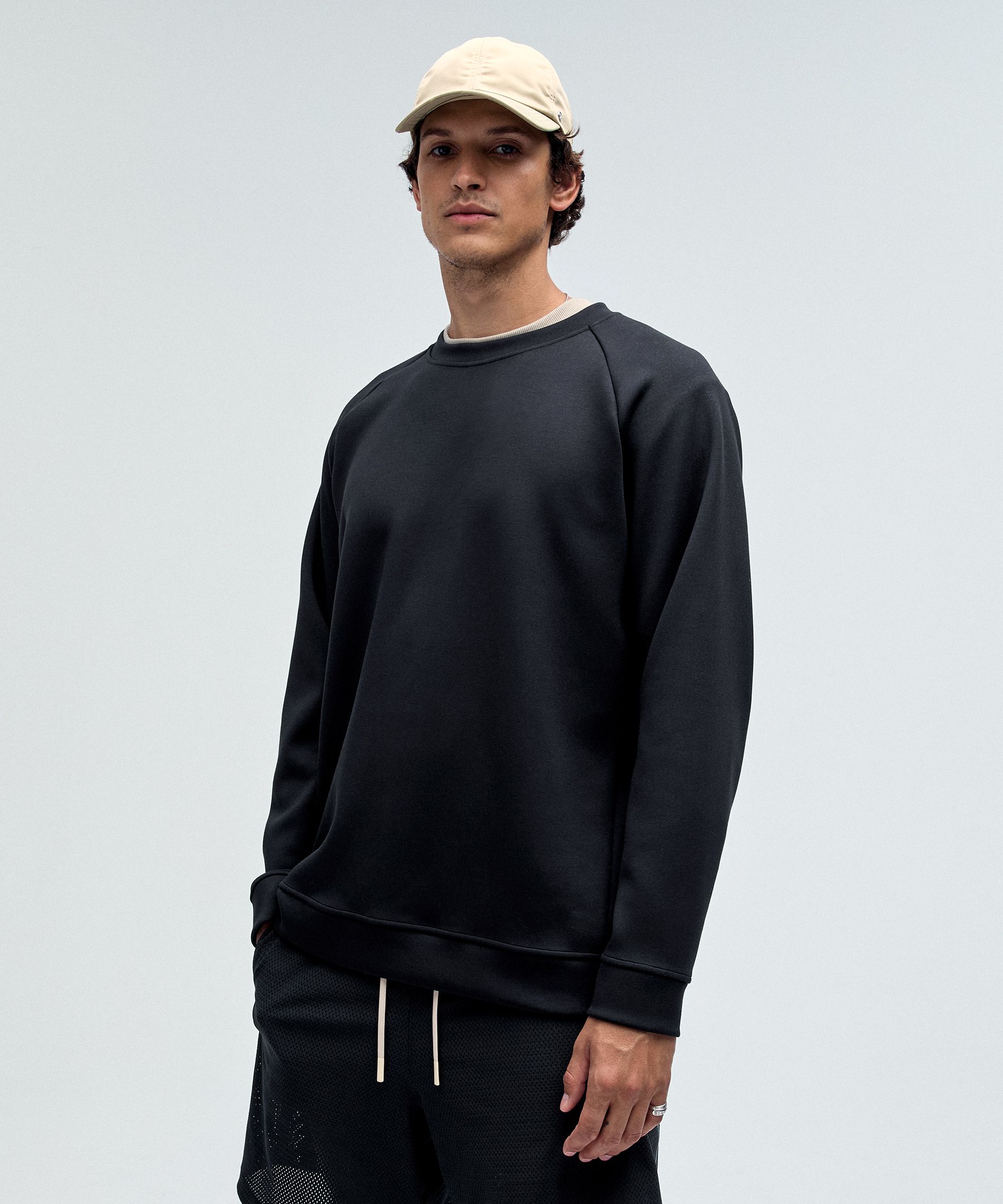 Instant recovery mode. Fast-drying fabric on this crew is soft on the outside and sleek next to skin for that perfect cool-down feeling.