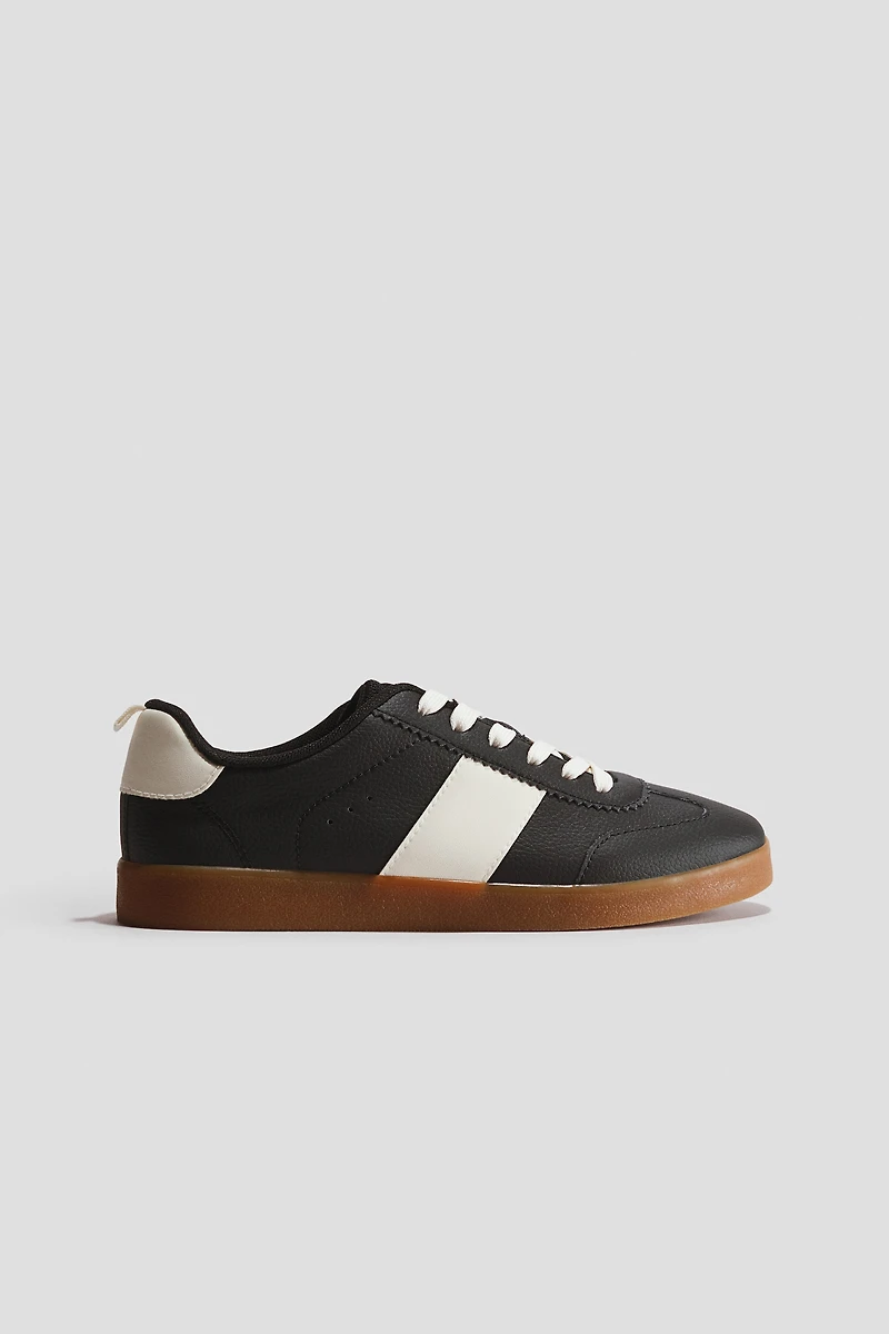 Classic, clean-style sneakers in coated fabric. Lacing at front and lightly padded edge and tongue. Lining in piqué, soft, molded insoles for added comfort, and patterned soles. Sole thickness 1 in.