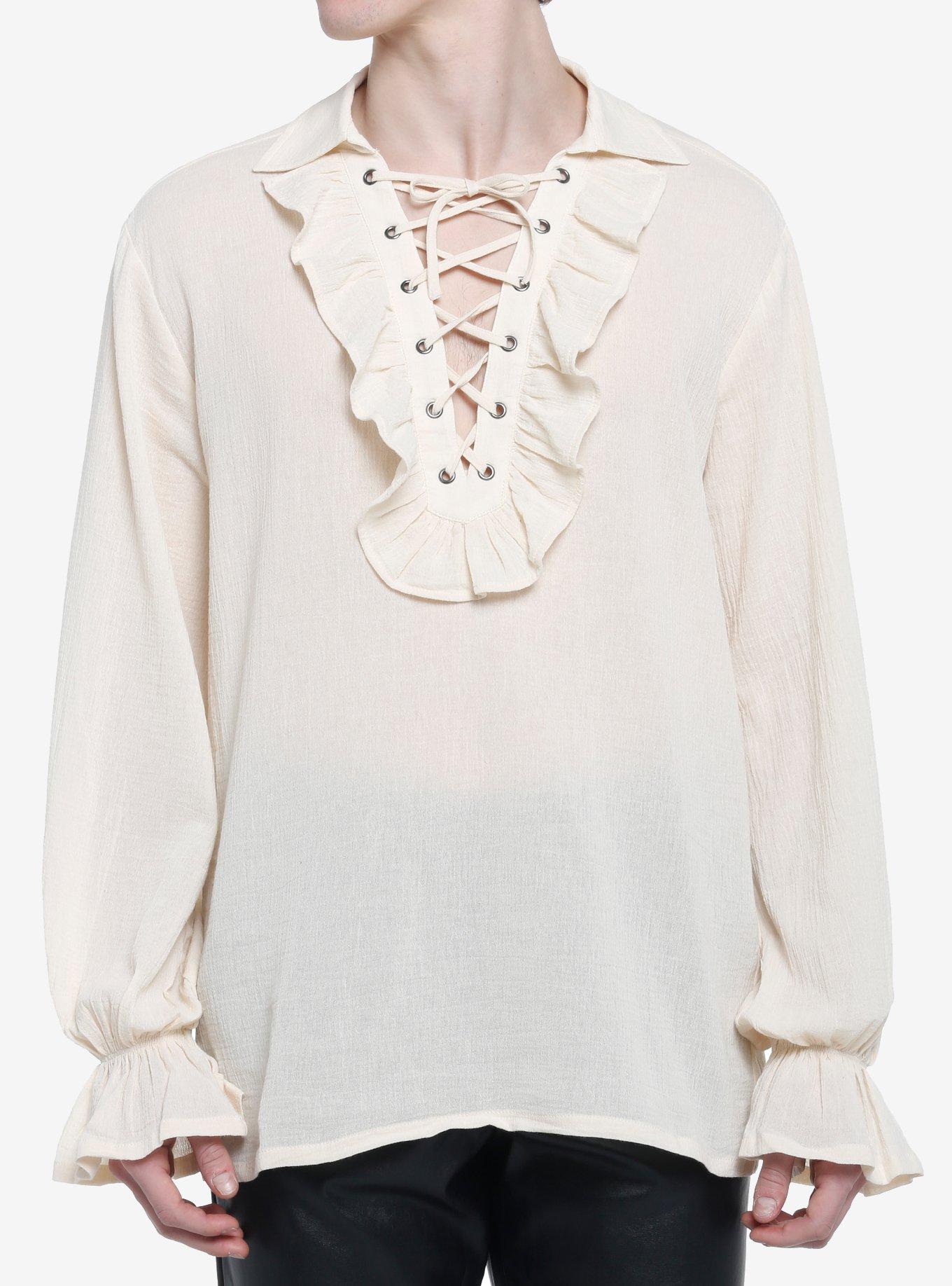 Renaissance Faire season will be here again before you know it, so why not grab the perfect top that will match with any outfit you have planned? This piece has ruffles on the sleeves and at the neckline, and lace-up detail in front.