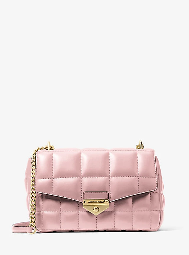 Soho Large Contrast Trim Quilted Faux Leather Shoulder Bag