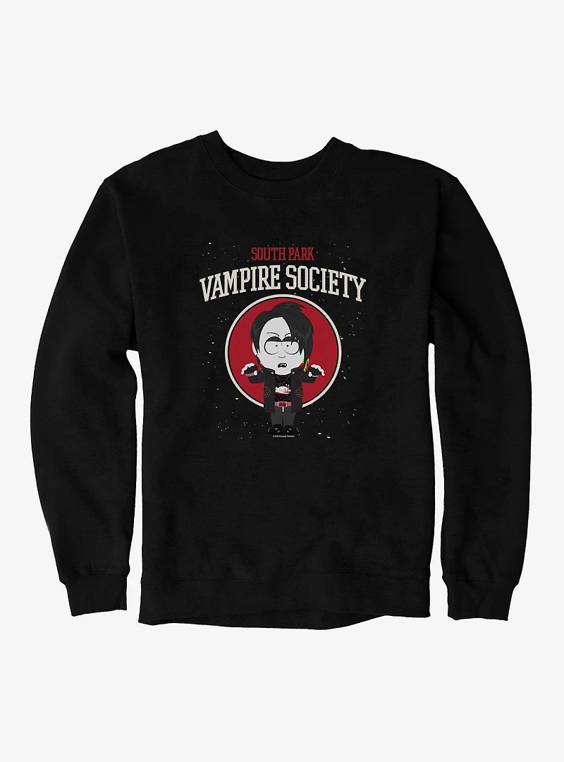 One of our favorite South Park characters, per se. Mike Makowski, leader of the South Park Vampire Society, appears on this crewneck sweatshirt.