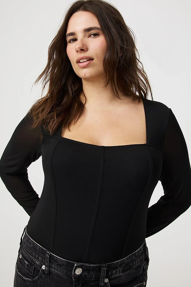 Ardene Black Mesh Corset Top | Size Large | Nylon/Spandex