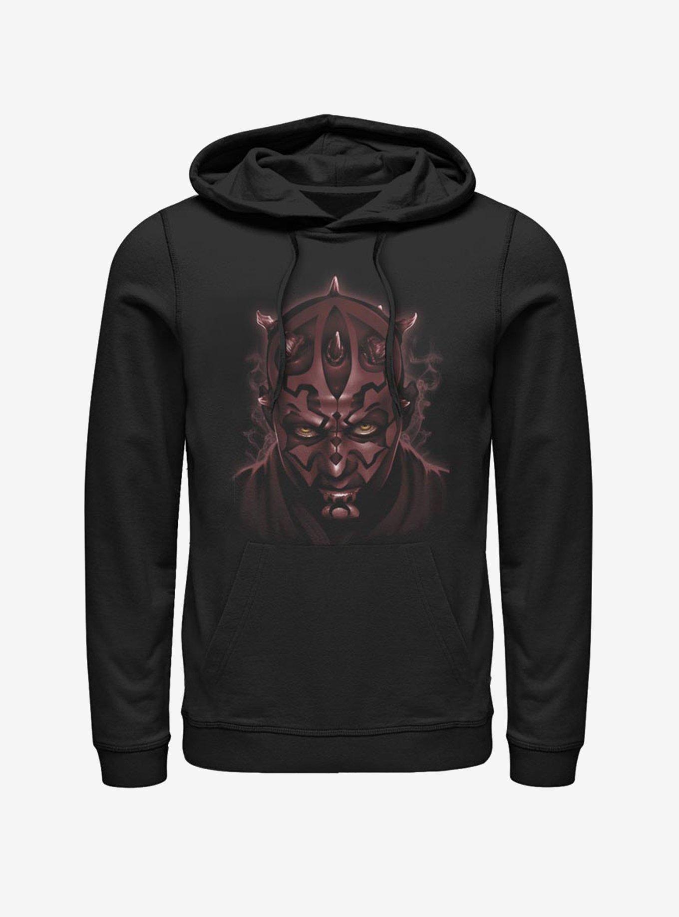 Revenge. I must have revenge. This black pullover Star Wars hoodie features a close-up of the deadly Darth Maul.