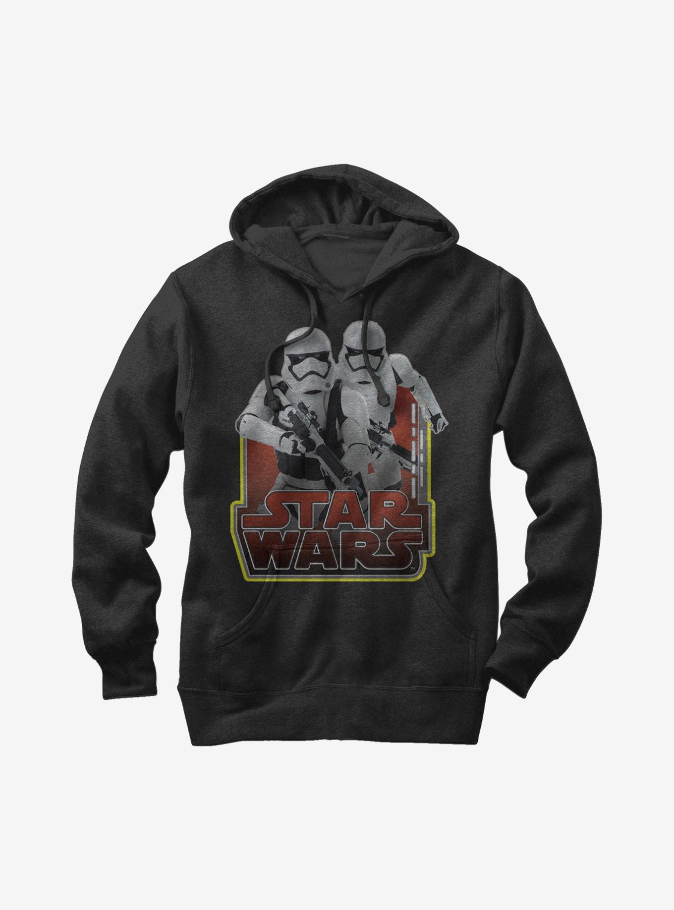 Join General Hux and try to stop the resistance with the Star Wars Episode VII: The Force Awakens First Order Stormtroopers Black Lightweight Hoodie. Two stormtroopers with blasters charge into battle above the Star Wars logo in a vintage-style print on the front of this black Star Wars sweatshirt. 80% Cotton, 20% Polyester.