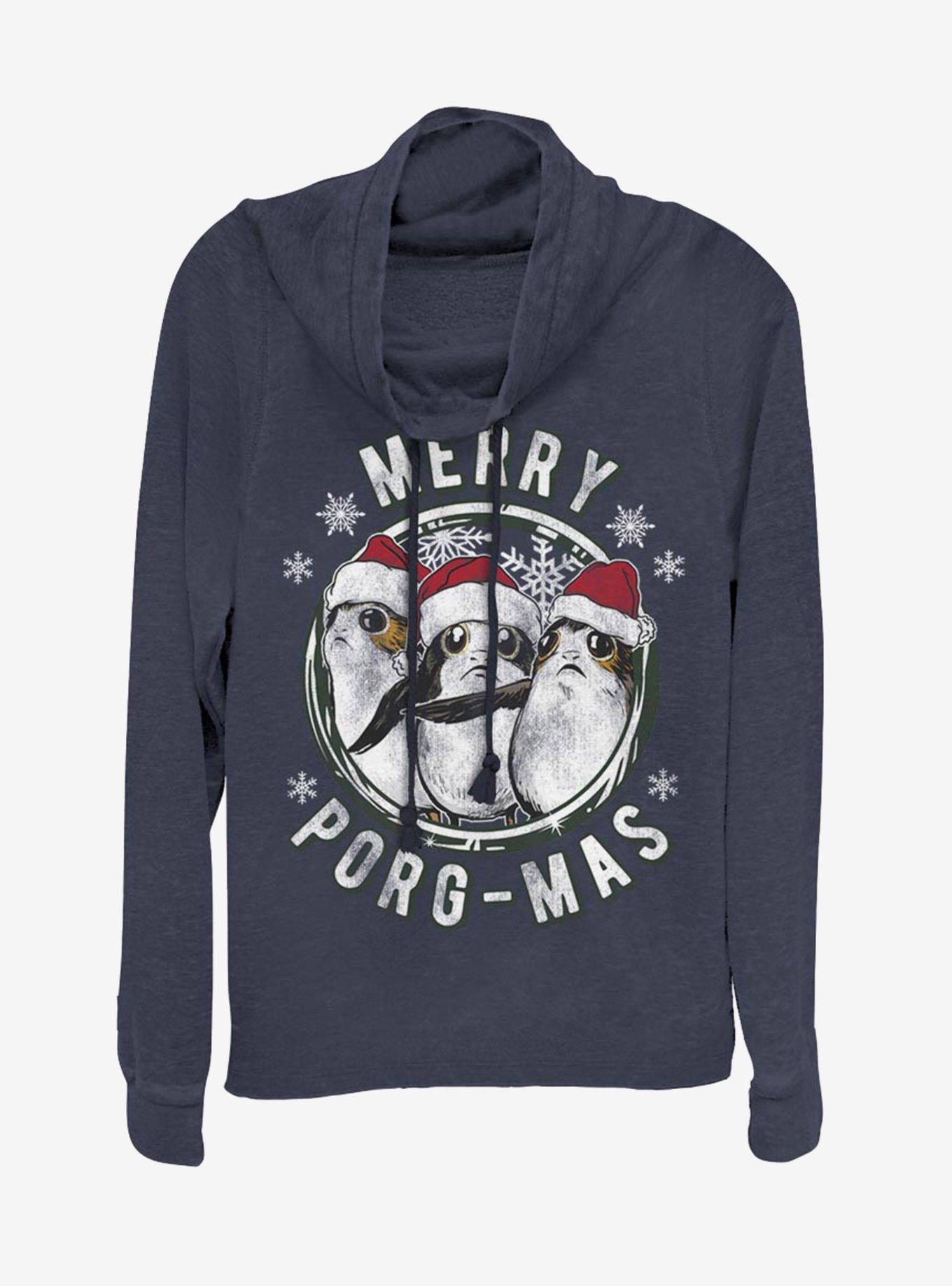 Star Wars Merry Christmas Porgs Cowl Neck Long-Sleeve Girls Top