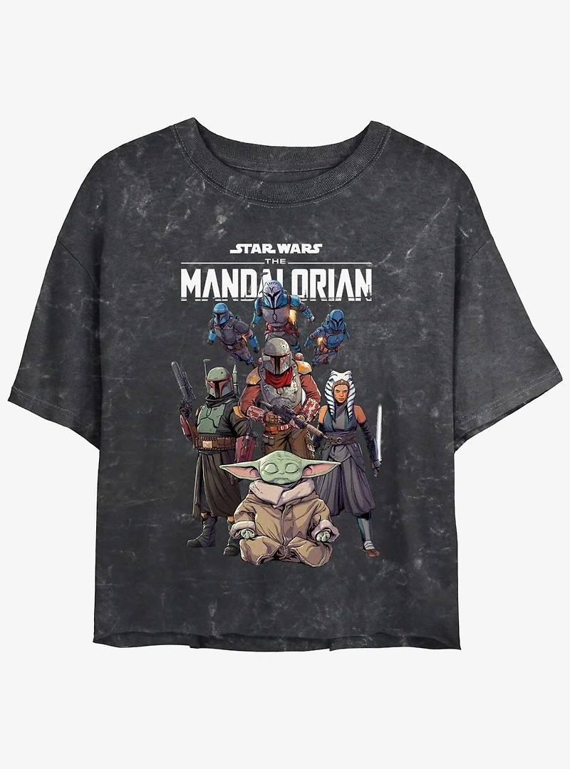 Star Wars The Mandalorian Grogu Protection Squad Mineral Wash Girls Crop T-Shirt