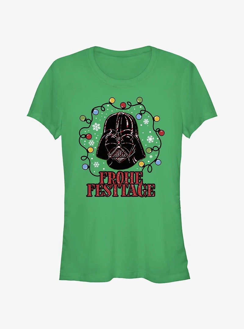 Star Wars Vader Lights Happy Holidays In German Girls T-Shirt