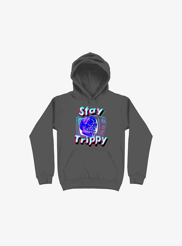 Stay Trippy Cute Retro Aesthetic Universal Vibe Skull Asphalt Grey Hoodie